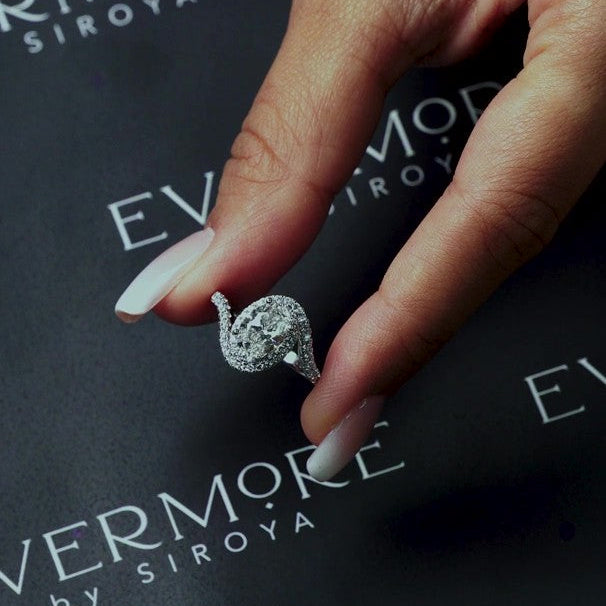 Crafted to captivate, the Ameera Oval Twist Halo Ring is designed to move with grace and sparkle with intention. At its heart lies a striking 0.7 ct oval-cut lab-grown diamond, a centerpiece of unmatched brilliance and fire, haloed and encircled by a graceful swirl of 68 accent diamonds which flow along it's signature twisted band, adding layers of refined sparkle and softness.