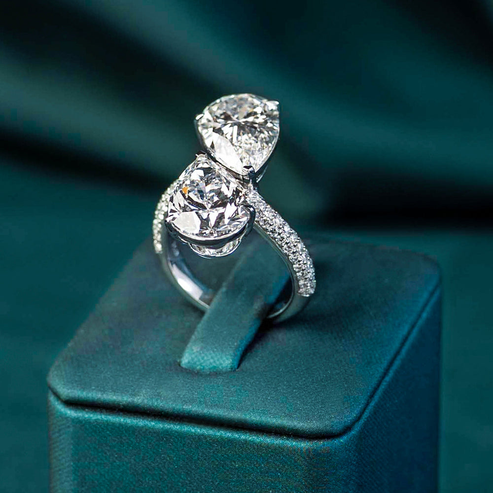 A celebration of two souls, two stories, and one unforgettable bond — the Elara Pear Toi Moi Ring reimagines classic romance with modern artistry. Featuring two pear-shaped diamonds (3 and 3.5ct each) set in a graceful Toi et Moi design, this ring symbolizes the coming together of two individuals, each brilliant on their own, yet even more radiant together.