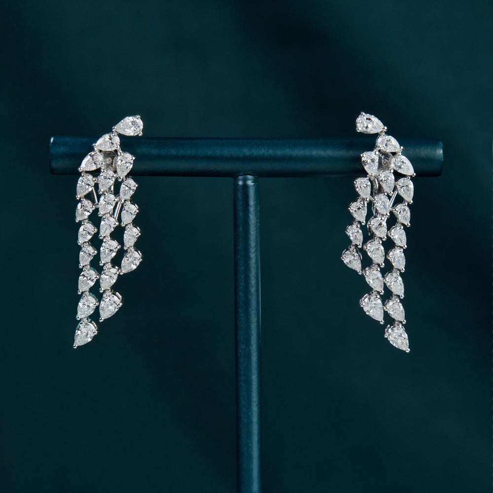 The layered drop silhouette elongates the profile while maintaining an airy, delicate feel, allowing each stone to shimmer independently with every turn. Romantic yet refined, these earrings balance softness with statement presence — perfect for elegant evenings, celebrations, and moments that call for luminous sophistication.