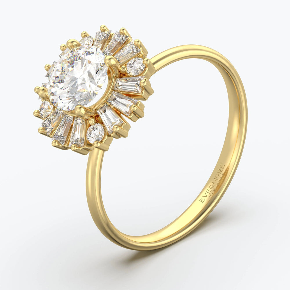 As you slip this ring onto your finger, you will feel the weight of the expert craftsmanship and quality that Evermore is renowned for. With "The Bloom Round Brilliant", you can feel confident that you are wearing a piece of jewelry that embodies sophistication, elegance, and timelessness, all while being guilt-free and affordable.