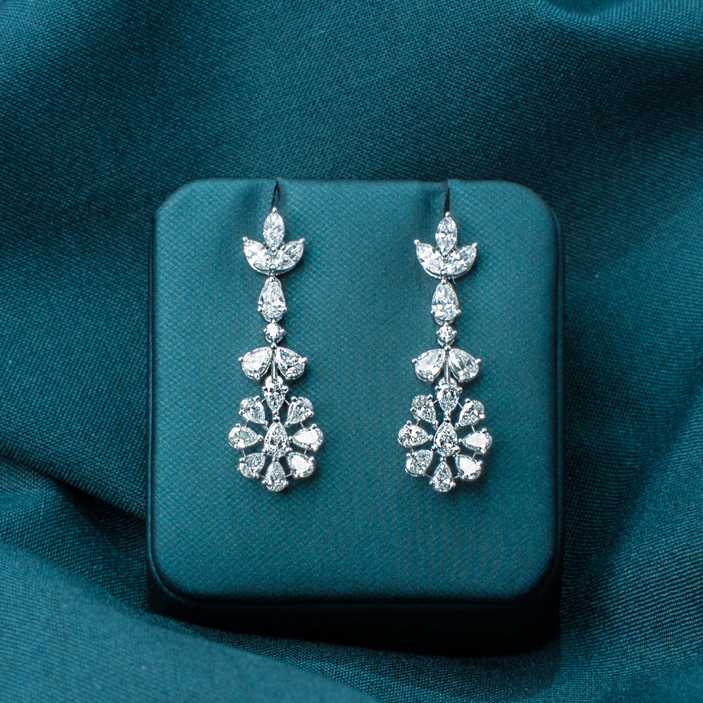 Elegant in their understated charm, The Delphine Drops present 1.77 carats of finely arranged diamonds in a sleek, elongated design. Subtle movement and delicate proportions create a soft shimmer that feels effortlessly modern.