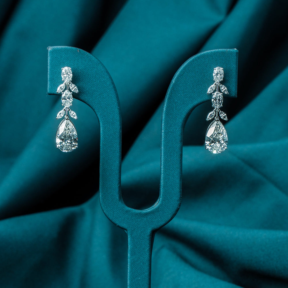 Romantic and captivating, The Rosella Drops feature 8.13 carats of shimmering diamonds arranged in an elegant cascading form. The interplay of clustered brilliance and graceful drops creates exceptional light play and fluid movement.