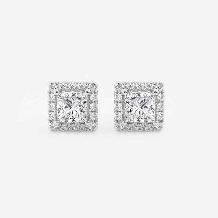 Channel the essence of royalty with the Evermore Regal Princess Halo Diamond Stud Earrings. Featuring stunning princess-cut diamonds framed by a brilliant double halo of smaller accent stones, these earrings deliver captivating sparkle from every angle.