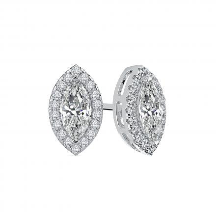 The marquise shape, known for its sophisticated, elongated profile, maximizes surface sparkle and flatters the ear with an eye-catching, graceful elegance. The halo amplifies the diamond's brilliance and presence, creating a radiant and memorable style perfect for special occasions or elevating everyday luxury.