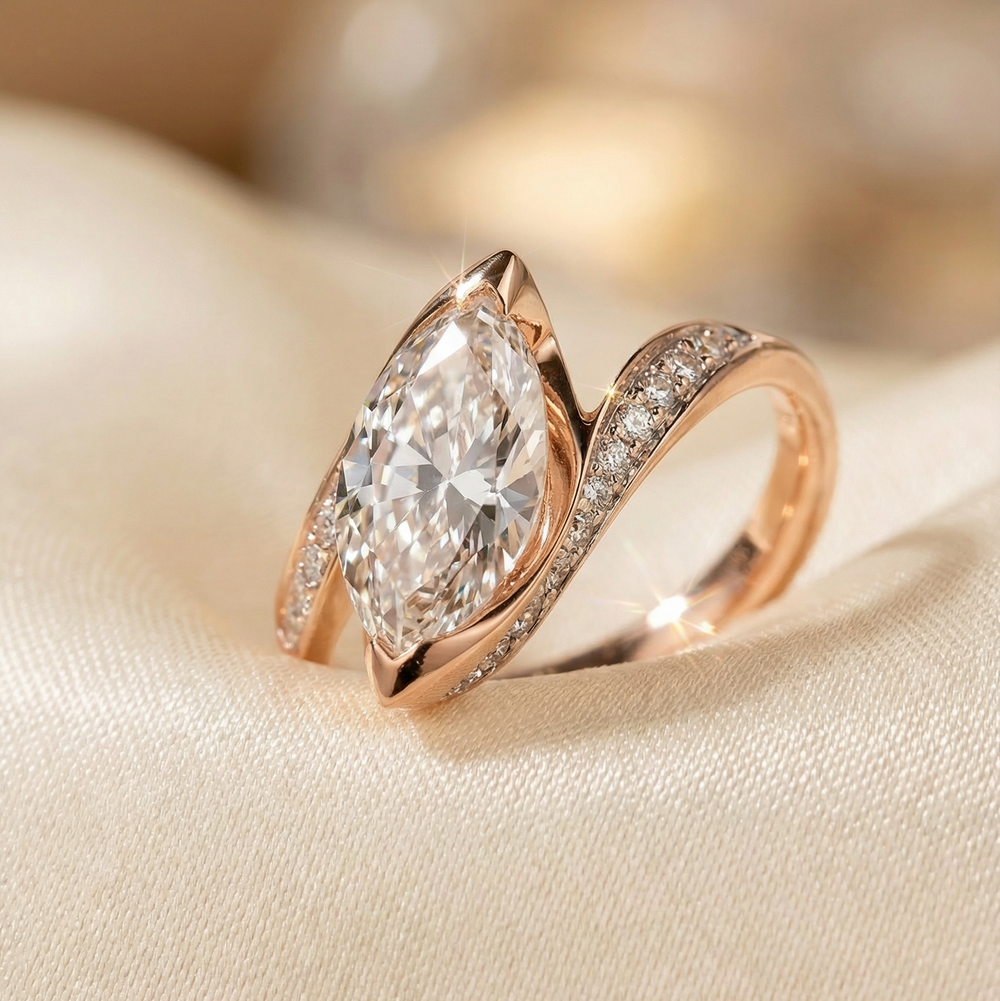 The Sylvan Marquise features a 1.1ct marquise diamond that echoes the shape of a leaf suspended in motion. Gentle curves and refined proportions create a natural elegance that feels organic yet refined.